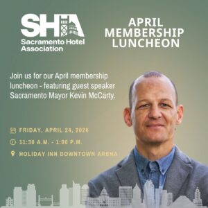 Join us for our April membership luncheon featuring guest speaker, Sacramento Mayor Kevin McCarty. This is a perfect opportunity to network, learn something new and enjoy a delicious meal with your hospitality community.